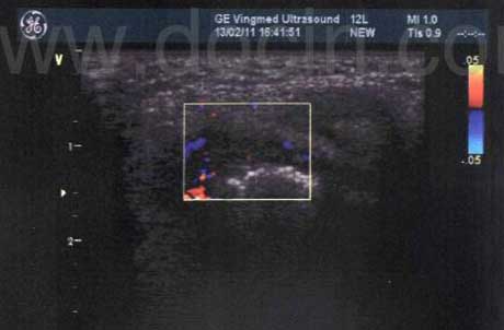 滑膜内异常血流信号:较多点状,短线状血流信号